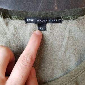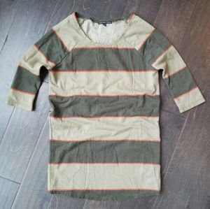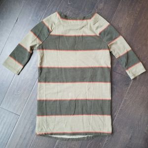 Truly Madly Deeply Stripped Shirt. Three quarters length sleeves. Super soft on the inside! Stripes in 2 different pretty greens as well as thin orange stripes. Size XS. Excellent condition. I would say this is a true xs size because the sleeves fit pretty tightly.
