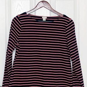 J. Crew Stripe pink and Navy Blue Boatneck Boxy Tee
