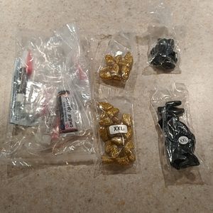 This is a set of soft toenail covers in size XXL. I bought them for my Pittie thinking she was going to scratch our new hardwoods. But she does not so now I have no need for them. I think they are silicone. Super easy to apply.put a little bit of super glue in the nail cover itself and then put the nail cover on their toenails. I have two unopened packages one of black and one of gold. Then I also have 11 more of each color in the open packets. I alternated colors for Purdue :-)