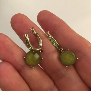 This is a gorgeous pair of fashion earrings by Liz Claiborne. They dangle beautifully on the ear. Made with a briolette cut green stone and gold tone metal. In excellent vintage condition.