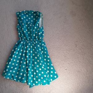 Adorable velvet heart teal and Polk a dot dress xs