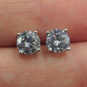 Sterling Silver Plain Round Cubic Zirconia Stud Earrings Vintage Wedding Engagement Anniversary Beautiful Everyday Minimalist Cute