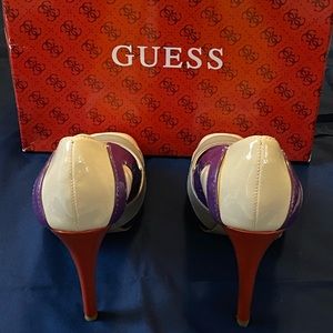 Guess Vicki Peep toe Platform Heel in color Purple Multi, size 8. Gently worn.