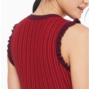 this classic sleeveless fit and flare sweater dress is crafted from a subtly textured yarn with contrast stitching. ultra-feminine and flattering, it's a pretty work-to-wherever-the-evening-takes-you dress.