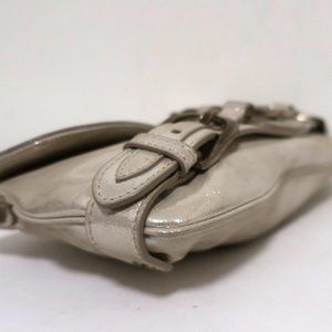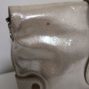 Jimmy Choo Tulita Clutch Silver Metallic Suede Chain Strap Small Bag