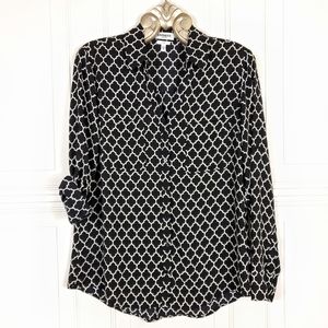 Moroccan Print Flowy Lightweight Silky Crepe Slim Fit Portofino Top - Dress Up or Down!