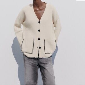 Fit: this style runs large; order one size down. - Banded neck - Long balloon sleeves - Front half O-ring zip closure - Fair isle knit upper - Solid waffle knit lower - Approx. 27" front length; 29" back length (size M) pit to pit 22”.