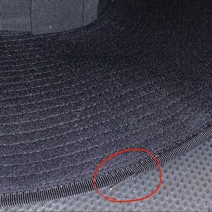 Marc Jacobs by Stephen Jones Millinery large boater hat from the Fall 2018 show. Black with striking purple sateen finish under brim. Size XS/S. Fits a head w/ ~20in circumference. New without tags w/ MINOR DAMAGE. Slight damage w/ a wire sticking out of the brim. Could easily be trimmed w/ wire cutter and not affect hat. Could possibly use mild reshaping depending on preference.