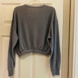 Hollister Women’s size XS cropped gray boyfriend t-shirt. Soft material with a waffle pattern. Elastic at waist. Machine wash and dry. Smoke and pet free home.