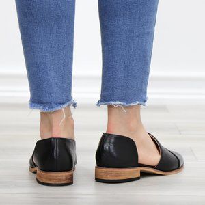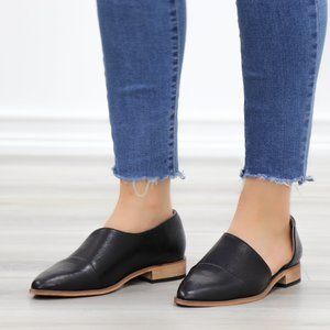 Black Opened Side Pointy Slip On Flat Loafer