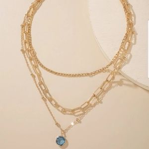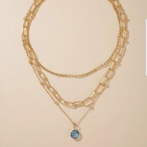 3 tiered gold colored layered necklace