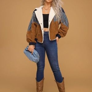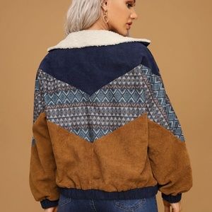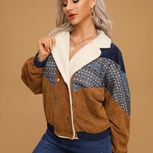 corduroy shearling line tribal print button jacket