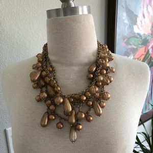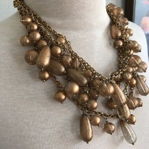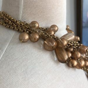 Very cool Vintage Gold Beaded Necklace. Beads are painted cracked gold and hang on multiple antiqued gold brass chains.