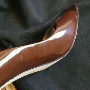 Nice pair of Marc Fisher shoes in Brown color patent Leather, overall un good used condition lots of life left, only small blemish on let shoe, shown in pictures,sold as is from a smoke free pet free home. Thanks for looking please share .