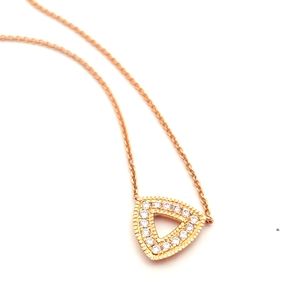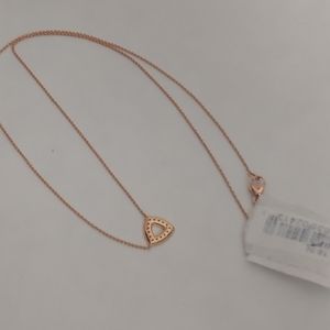 This is gorgeous and super sparkly! Brand new. Features .13 carats of beautiful diamonds set in an open triangle. This is 14-karat rose-gold and is 16 in