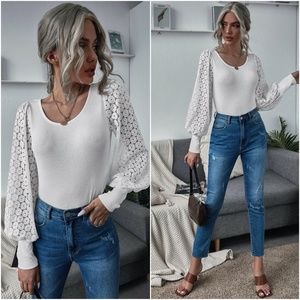 white lace wide long sleeve bodysuit boho