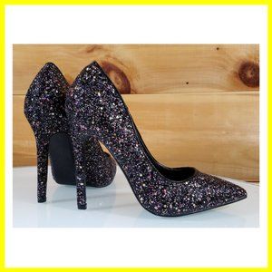 NWT Glitter Pointy Toe Stiletto Pumps Heels Black