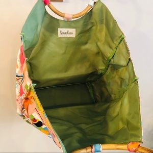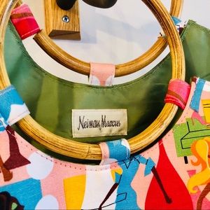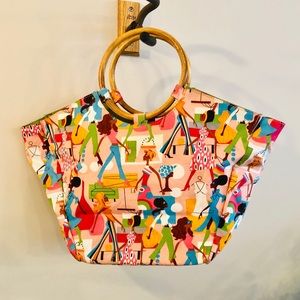 This cute tote handbag is extremely rare; it cannot be found anywhere else! The outside material is a sturdy interlock cotton weave, and the inside is an easy-clean & waterproof nylon material. The vibrant print features women walking with a 60s modern era feel, and the bamboo handles add the perfect finishing touch.