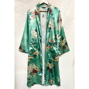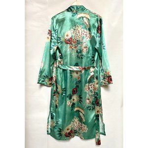 *Style: vintage floral print throughout and open front, matching waist strap, front pockets, lapel collar, long sleeves