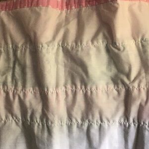 Apron ties at waist...it measures 28” across front at waist and then add 25” for each tie piece. The back of apron is lined with white cotton. See photos.