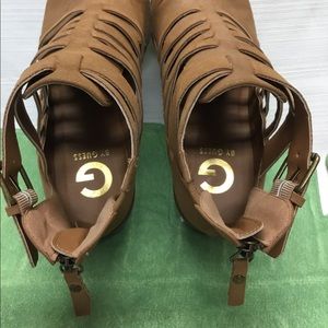 I Ship Fast. Good Looking Guess Booties. Nude Color. Zipper in Back. Ht 6.5”. Size 8.5M. Heel Height is 2.75”. Very Good Condition.