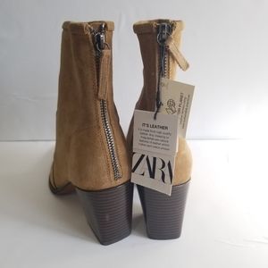 ZARA Leather Suede Ankle Heeled Boots NWT