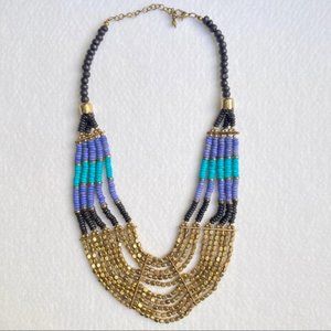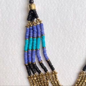 Taneesi Indian Blue Gold Layered Beaded Necklace