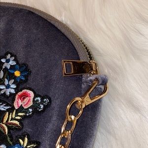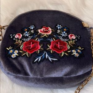 Floral Embroidered | Velvet | Gold chain | Zipper | Grey | Multicolor | Over the Shoulder | Crossbody | Purse