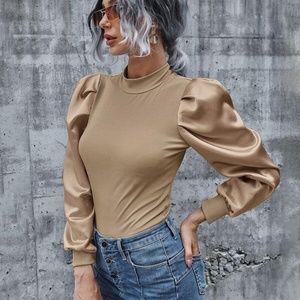 baby blue Ribbed long sleeve puff top fall