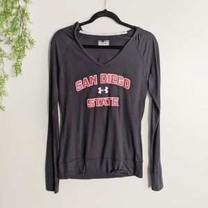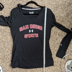 (Under Armour) Black San Diego State Thin long sleeve Hoodie Medium. Polyester and rayon. Excellent condition.