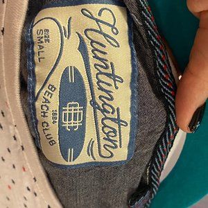 Adorable patriotic t-shirt from Huntington Beach. Red and blue star pattern with a denim color pocket. Is a Men's size small that I bought to wear for myself as an oversized shirt. This is a fun shirt to style.