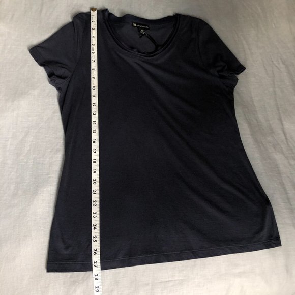 Valerie Bertinelli Navy Blue Short-Sleeved T-Shirt w/Multi-Layer Scoop Neckline