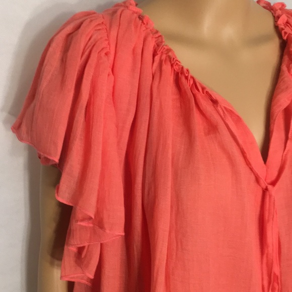 NWT loveriche Coral Flutter Sleeve Top Tie Front