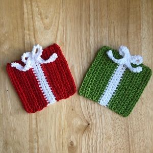 Crochet Christmas Present Coasters (2 pack)