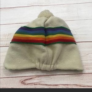Re-posh! I love rainbows 🌈 but this hat is too small for my big head! This is closer to a child’s size to me, bc my head is really average size. Lined with cotton so not scratchy. Some flaws as pictured but really not noticeable when wearing. People will notice the beautiful rainbow before seeing the flaws! Bring a little color to dreary winter days!