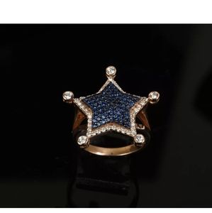 Blue & white sapphire rose gold star ring sz7.75
