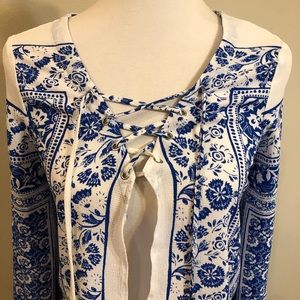 Gently used and in excellent condition. Laces up in front and is an open front style. You’ll want to wear a tank or something underneath. Size small. Measures approximately 17” across from pit to pit when laid flat and 23” long. Material is very lightweight and is 93% polyester and 7% spandex.