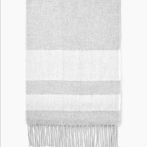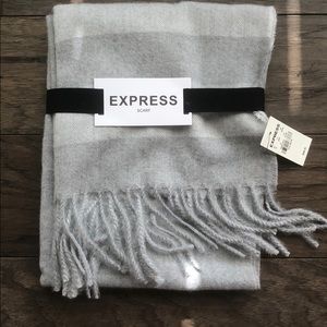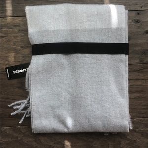 Express blanket scarf, gray, striped, new with tags, 68”x 12” with 3” fringe, incredibly soft, goes with anything and makes a great gift for the holidays!