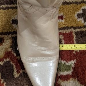 A-MAZ-ING VINTAGE John Fluevog knee high, angled snip toe, patent leather/pearl finish western style boots!!!