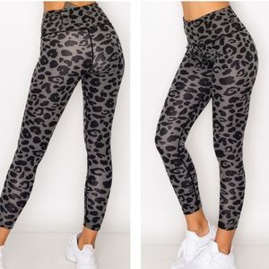 New with tags gray and black leopard print high waist slimming leggings. So soft with great stretch. Phone pocket at back waistband (iPhone XS with PopSocket fits easily).