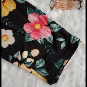 INFINITY RAINE Black floral print leggings OS fits up to size 12 comfortably NWT