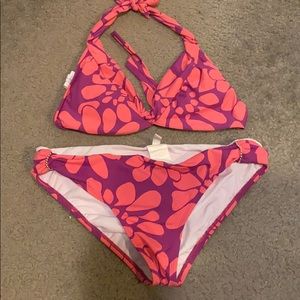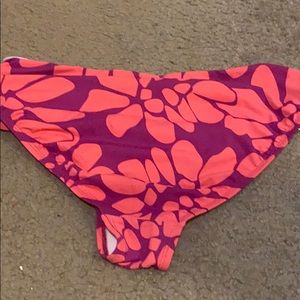 Very pretty purple and pink floral pattern, cinched detail on bottom