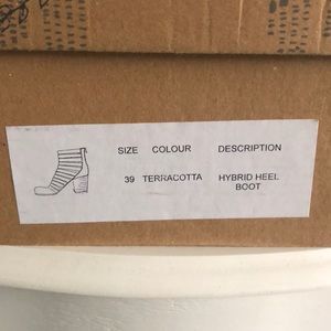 Hybrid Heel Booties in EUC, size 39. These are suede, color is Terracotta. Zip up back. Retail price 198.00. Gentle scuffs on toe, but this is the look of FP bootie. These are Sz 39/US 9 but I am a true 8 and these fit me perfect.