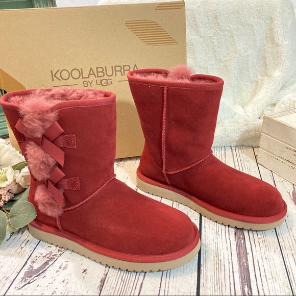 Ugg koolaburra Victoria short boots new in box . Wine color / Syrah . Sheep fur / blend . Super cute . Side bow detail . Perfect for the coming season . Suede . Size and 7 and 11 available .