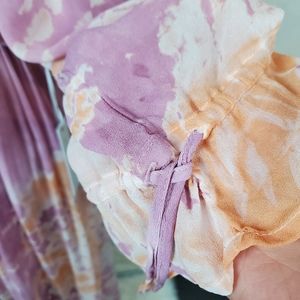 Young Fabulous & broke pink and orange toe dye dress. 2 slits in front. Drawstring sleeves, elastic waist, hook and eye clasp on front.