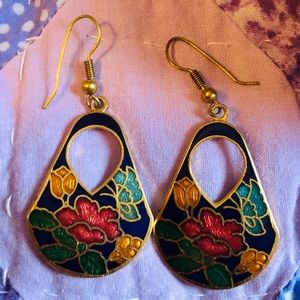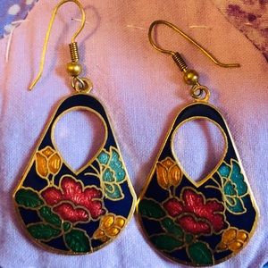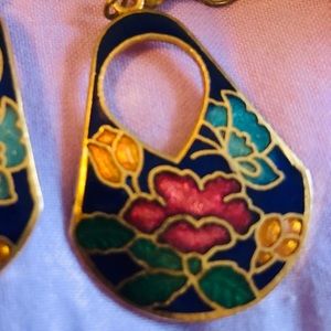 Flower Basket Vintage Earrings, Flowers of yellow/gold, turquoise, gold & blue❣️🥀