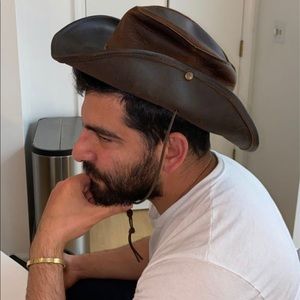 Outback hat Western Style Leather Cowboy hat in brown color with suede strap / unisex