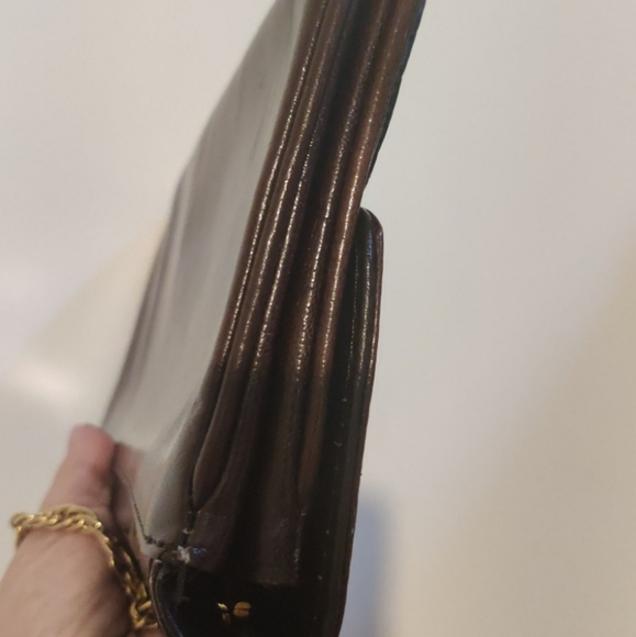Lovely vintage clutch, made out of genuine crocodile leather, in chocolate brown tone, with two compartments, fully lined, one interior zipped pocket, can be carried on a gold metal chain folding inside, coming from a non smoking/no pets home, overall in very great pre-owned condition, please note an imperfection/ scuff on the front right bottom, not very noticeable when worn.