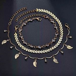 ⚜️[𝟯/$𝟮𝟴]⚜️3 Layered Fish Bone Leaf Anklet NEW