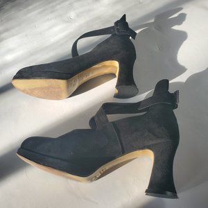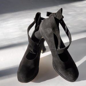 These beautiful black suede leather shoes with a cross strap have a very elegant vintage look.